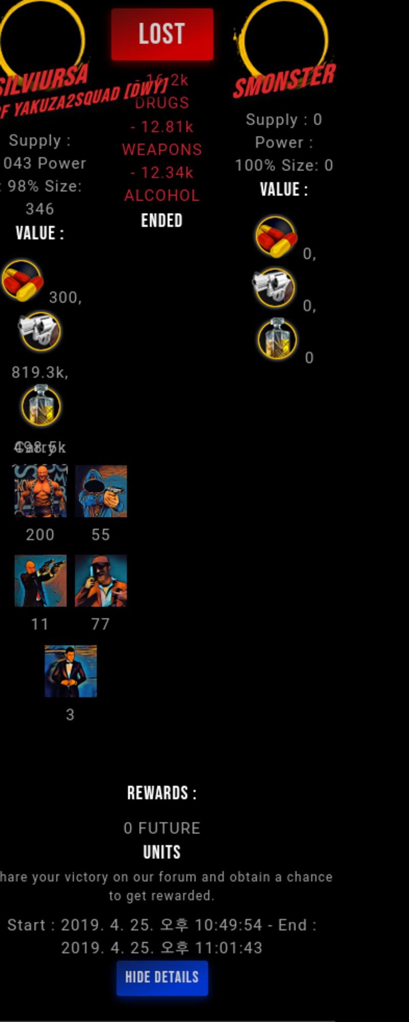 Check my latest fight ! silviursa vs smonstersmonster (51)in #drugwars-fight • 7 years ago #gaming #fight #dw