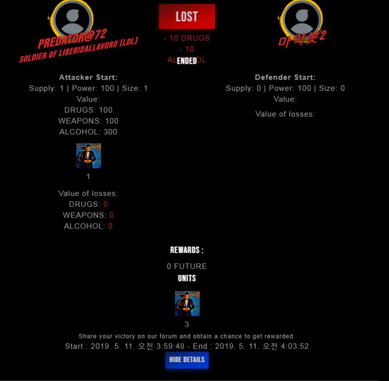 Check my latest fight ! predator@72 vs 마약봇2snuff2 (51)in #drugwars-fight • 7 years ago #gaming #fight #dw