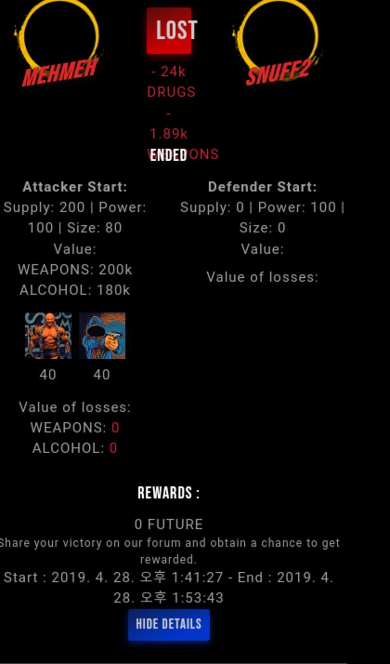 Check my latest fight ! mehmeh vs snuff2snuff2 (51)in #drugwars-fight • 7 years ago #gaming #fight #dw