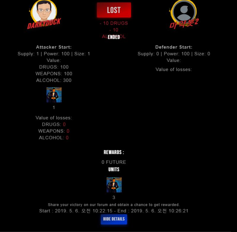 Check my latest fight ! darkyduck vs 마약봇2snuff2 (51)in #drugwars-fight • 7 years ago #gaming #fight #dw