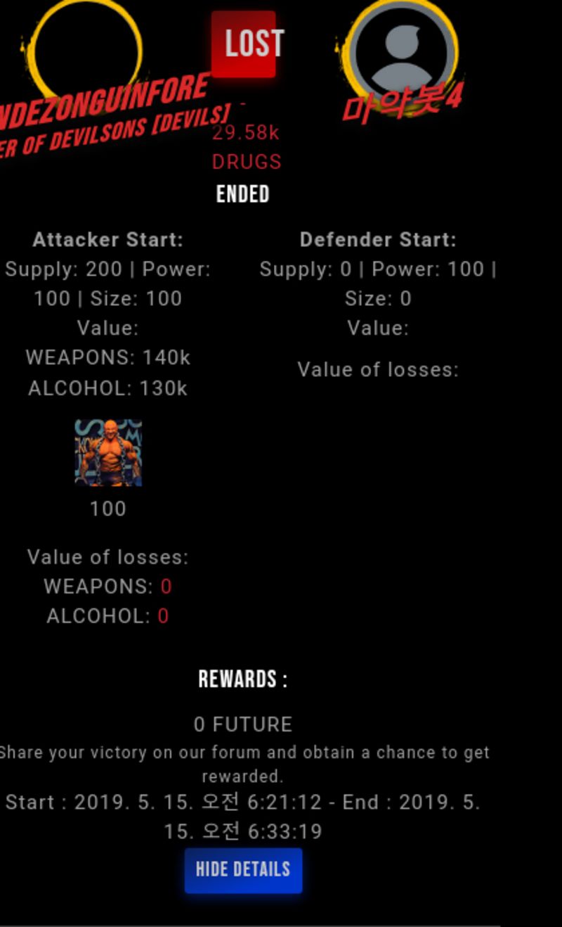 Check my latest fight ! fandezonguinfore vs 마약봇4snuff4 (51)in #drugwars-fight • 7 years ago #gaming #fight #dw
