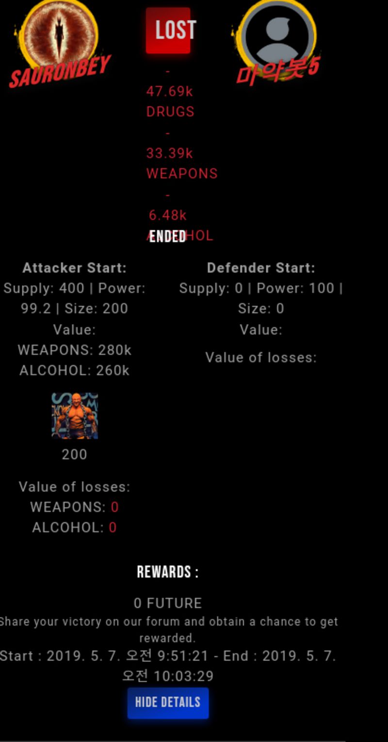 Check my latest fight ! sauronbey vs 마약봇5snuff5 (51)in #drugwars-fight • 7 years ago #gaming #fight #dw