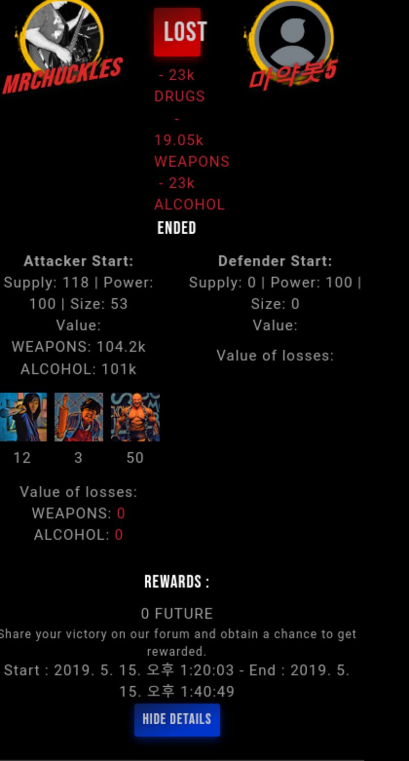 Congratulations @snuff5 ! Your fight received an upvote of 2% from the King Dealer as incentive for your activity and as a gratitude for your support to the game.