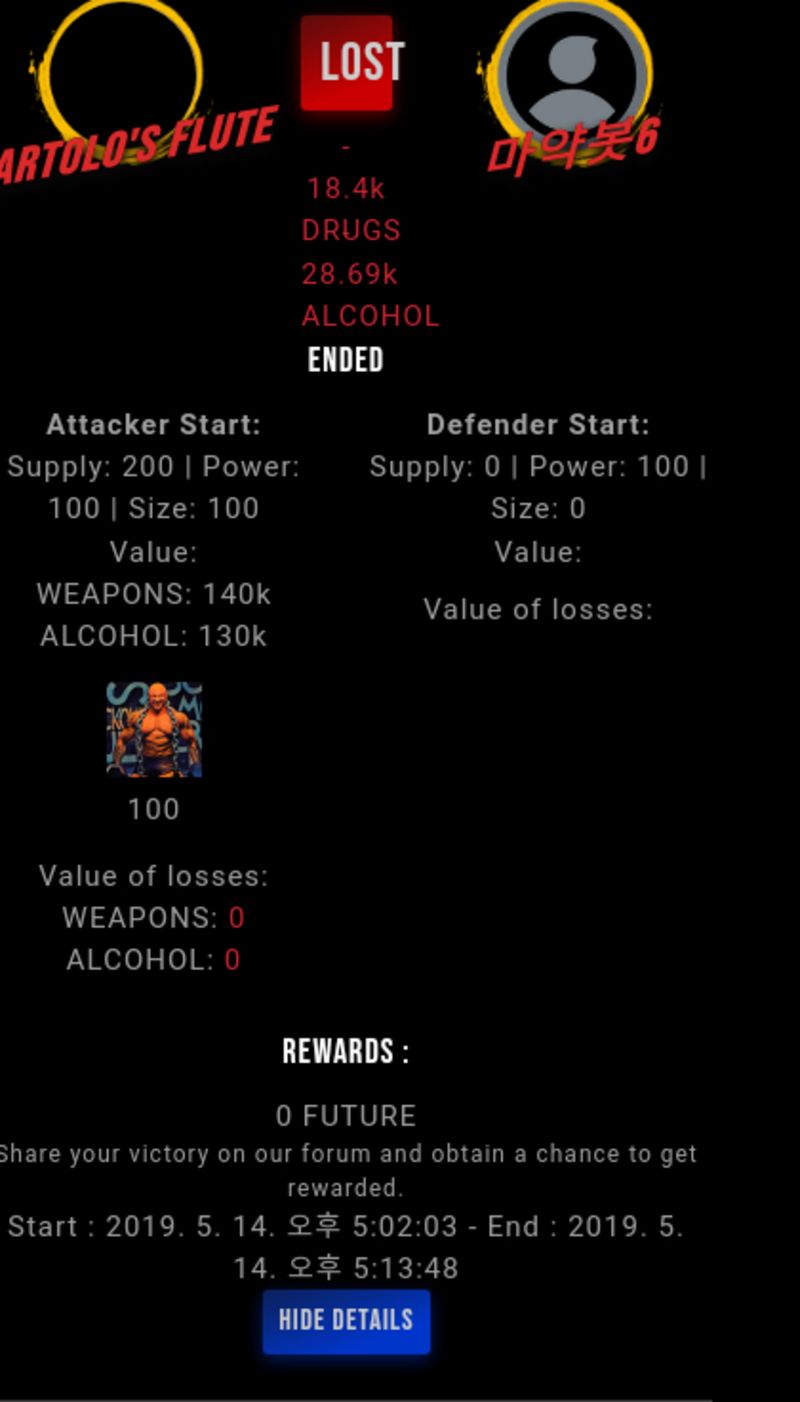 Check my latest fight ! bartolo's flute vs 마약봇6snuff6 (51)in #drugwars-fight • 7 years ago #gaming #fight #dw