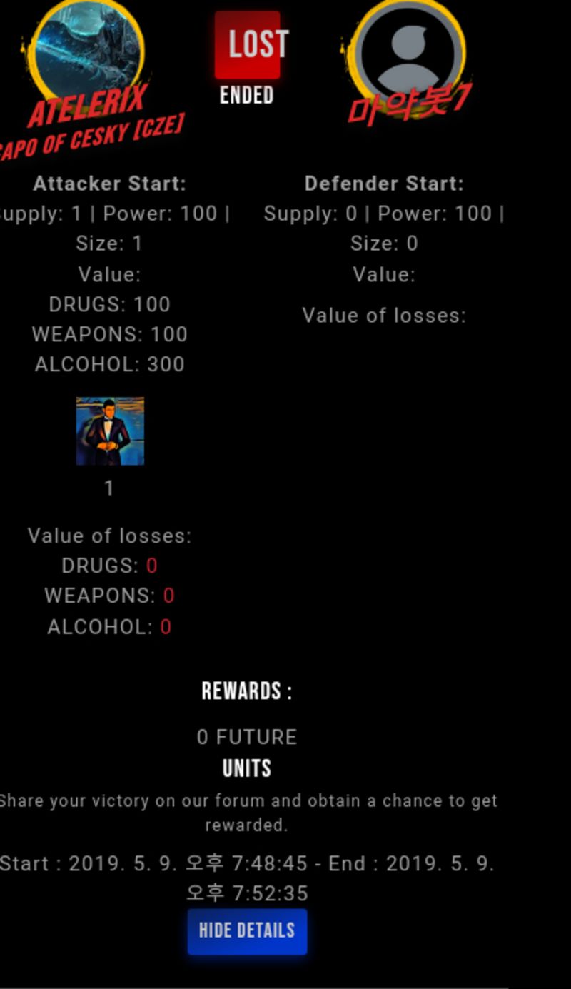 Congratulations @snuff7 ! Your fight received an upvote of 1.8% from the King Dealer as incentive for your activity and as a gratitude for your support to the game.