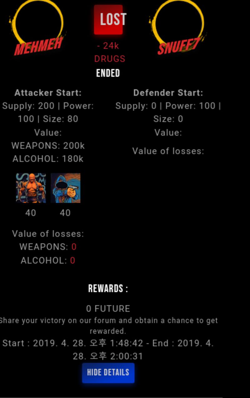 Check my latest fight ! mehmeh vs snuff7snuff7 (51)in #drugwars-fight • 7 years ago #gaming #fight #dw