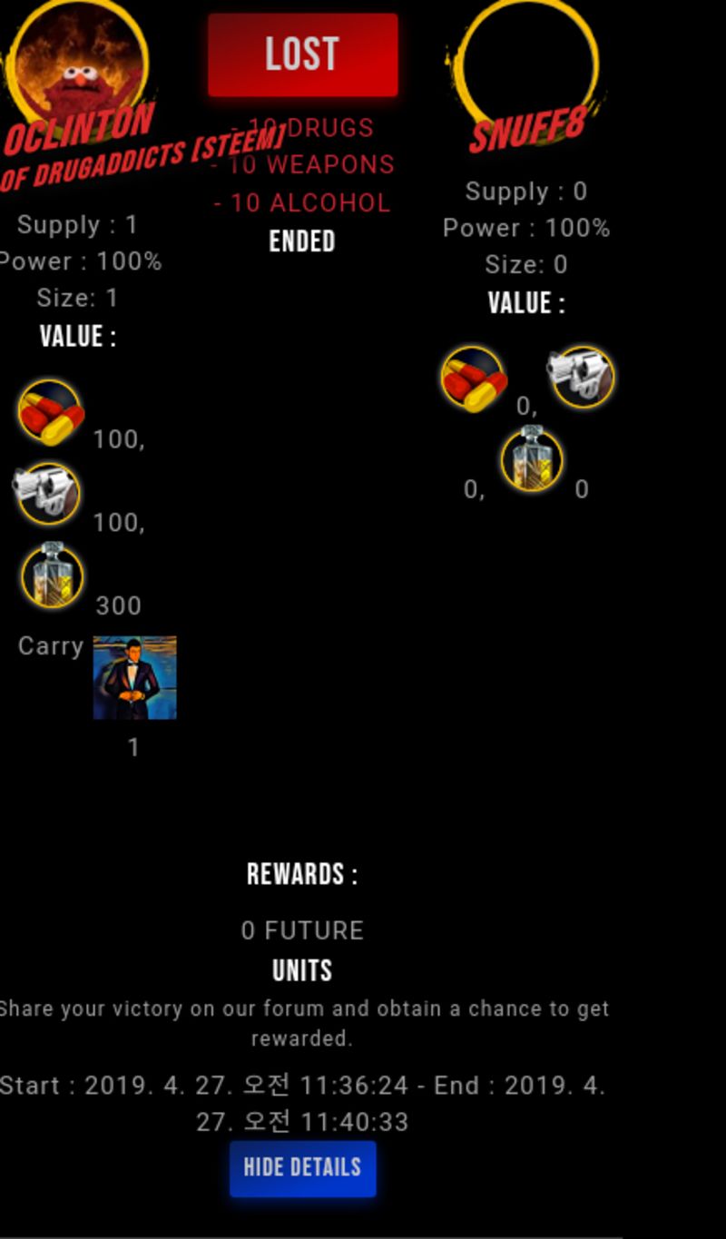 Check my latest fight ! oclinton vs snuff8snuff8 (51)in #drugwars-fight • 7 years ago #gaming #fight #dw