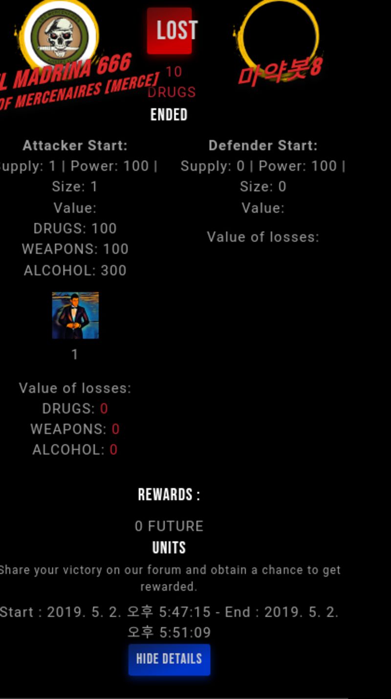 Congratulations @snuff8 ! Your fight received an upvote of 1.5% from the King Dealer as incentive for your activity and as a gratitude for your support to the game.