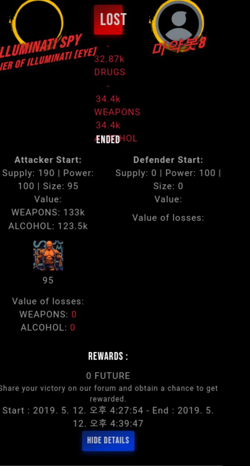 Check my latest fight ! illuminati spy vs 마약봇8snuff8 (51)in #drugwars-fight • 7 years ago #gaming #fight #dw