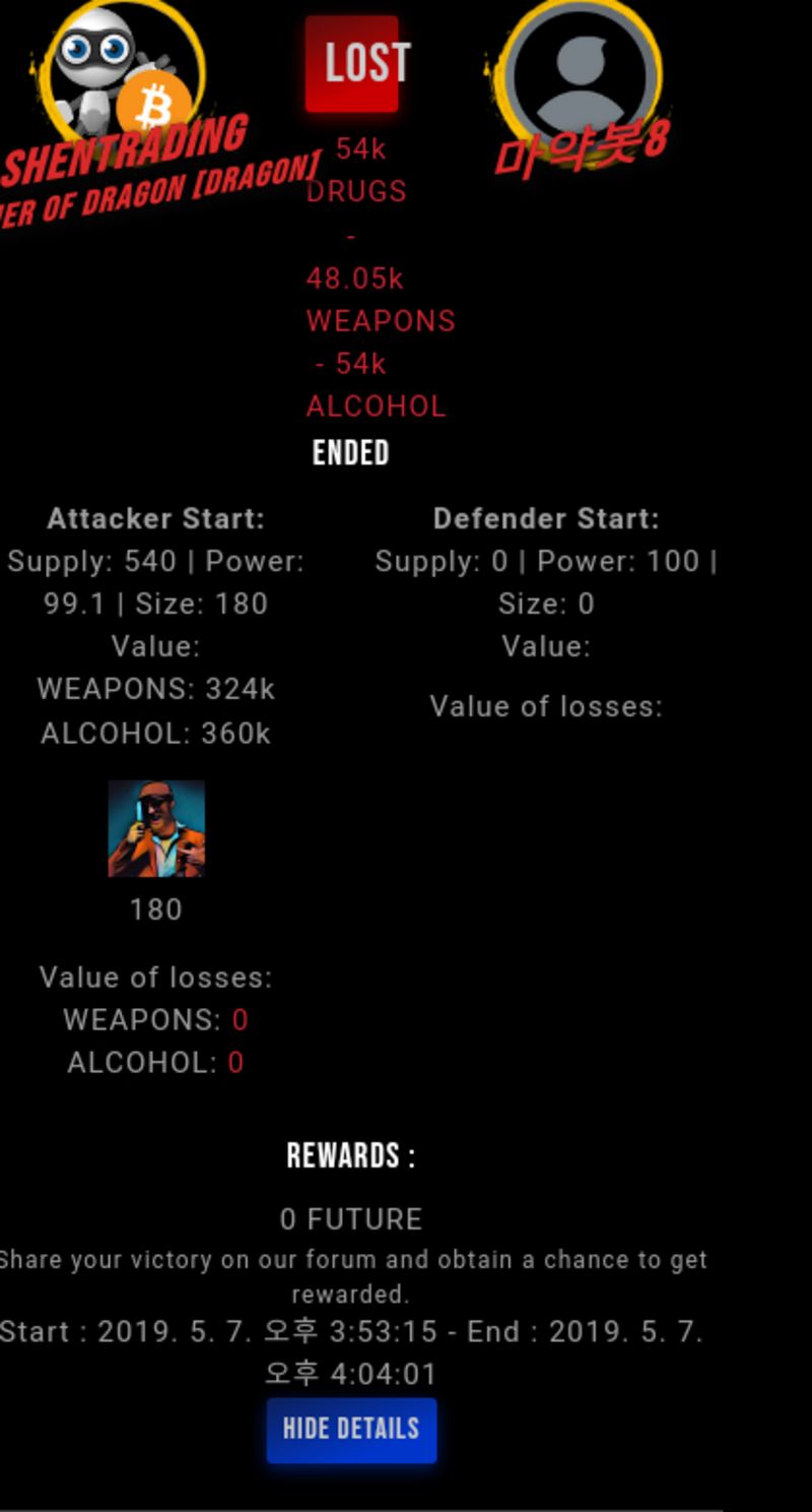 Check my latest fight ! shentrading vs 마약봇8snuff8 (51)in #drugwars-fight • 7 years ago #gaming #fight #dw