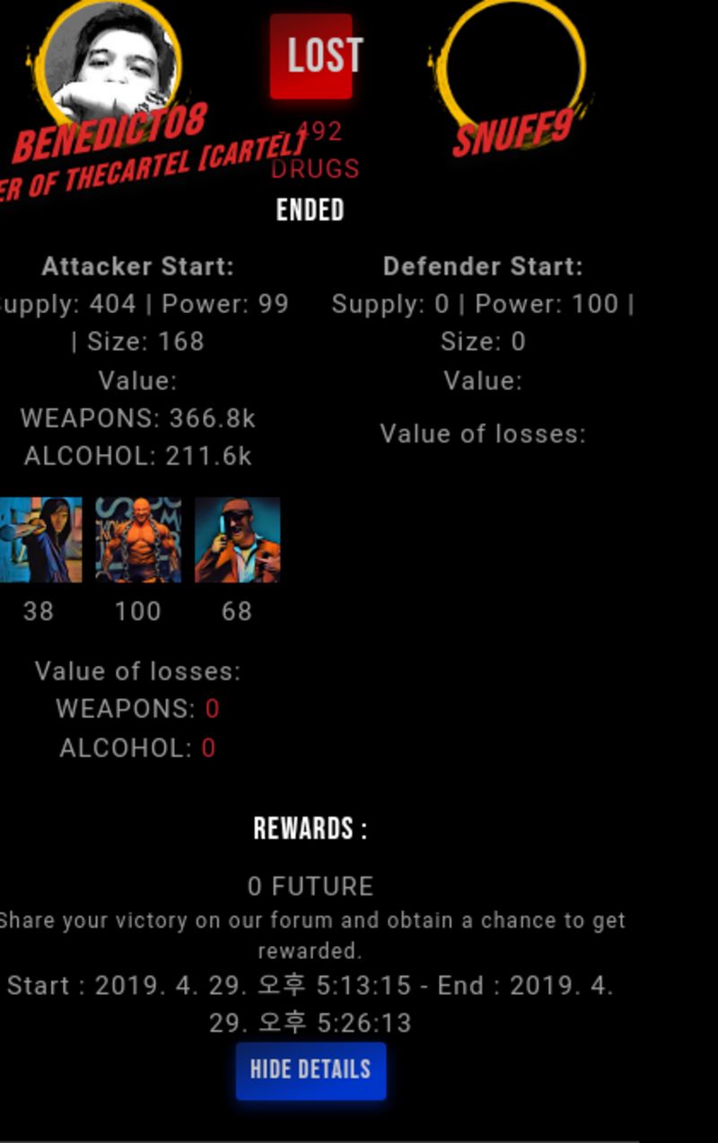 Check my latest fight ! benedict08 vs snuff9snuff9 (51)in #drugwars-fight • 7 years ago #gaming #fight #dw