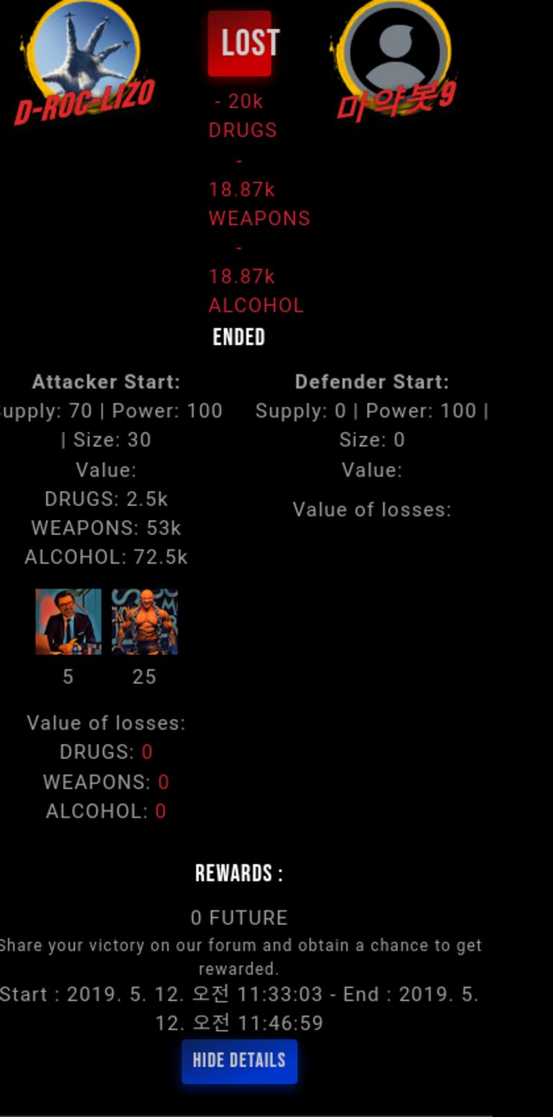 Congratulations @snuff9 ! Your fight received an upvote of 1.9% from the King Dealer as incentive for your activity and as a gratitude for your support to the game.