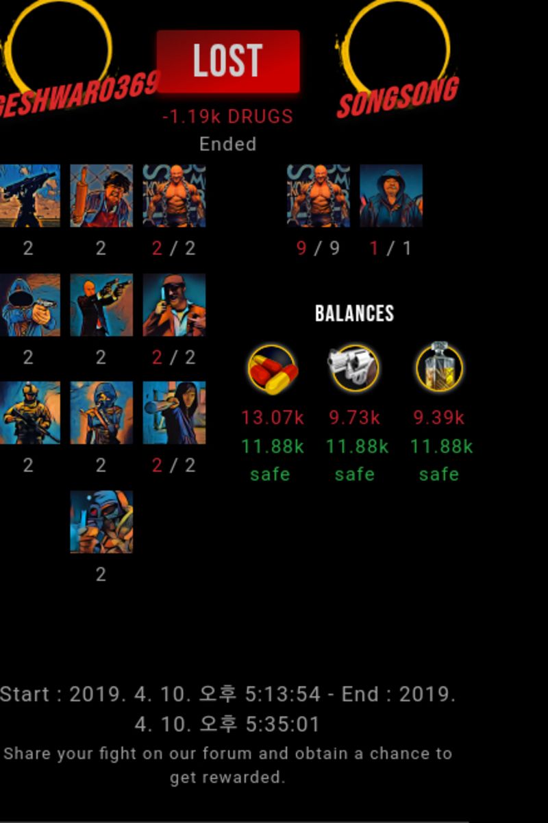 Check my latest fight ! nageshwar0369 vs songsongsongsong (57)in #drugwars-fight • 7 years ago #gaming #fight #dw