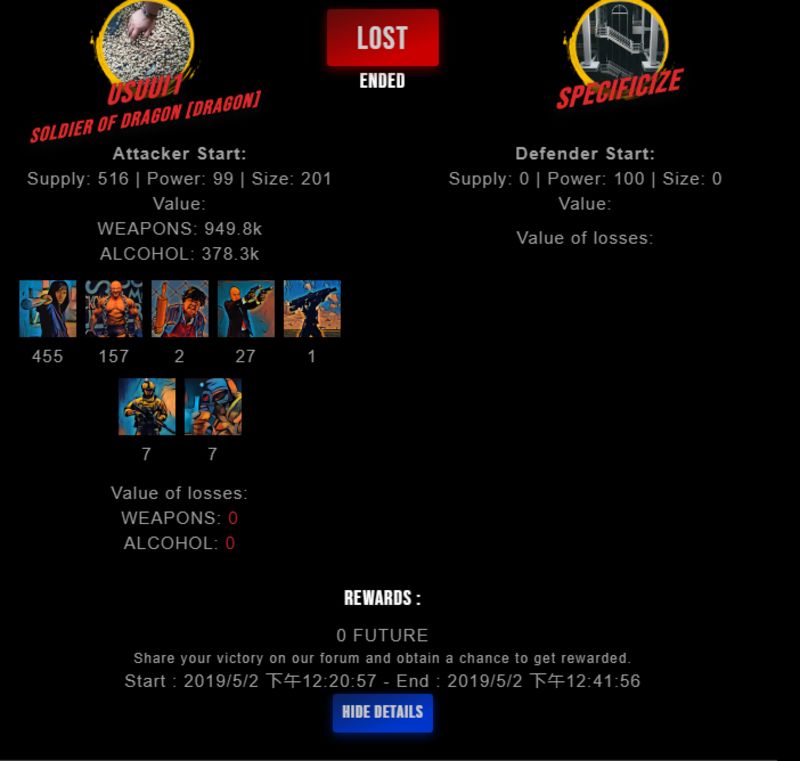 Congratulations @specificize ! Your fight received an upvote of 10% from the Dealer as incentive for your activity and as a gratitude for your support to the game.