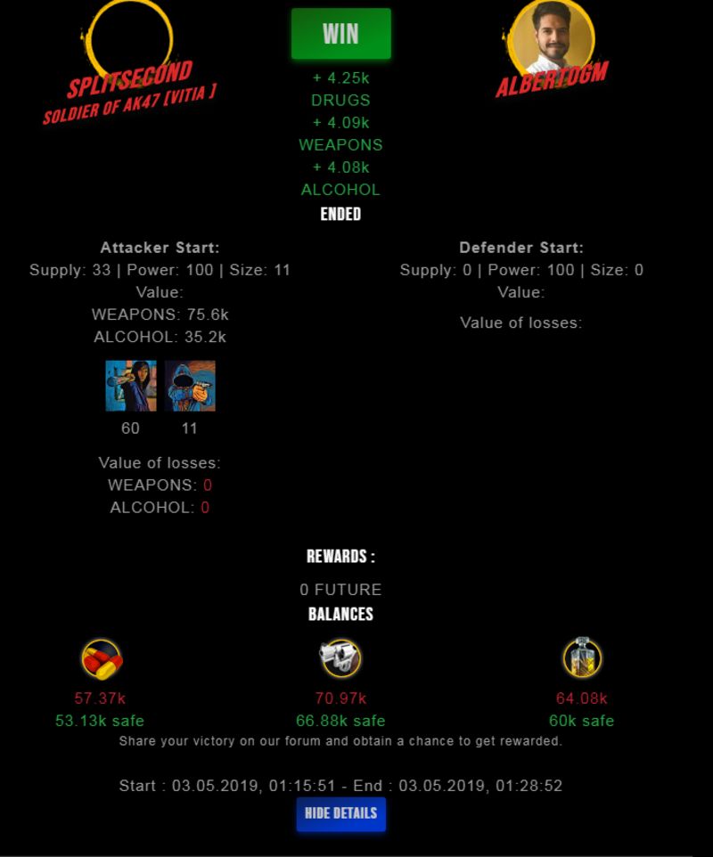Check my latest fight ! splitsecond vs albertogmsplitsecond (57)in #drugwars-fight • 7 years ago #gaming #fight #dw