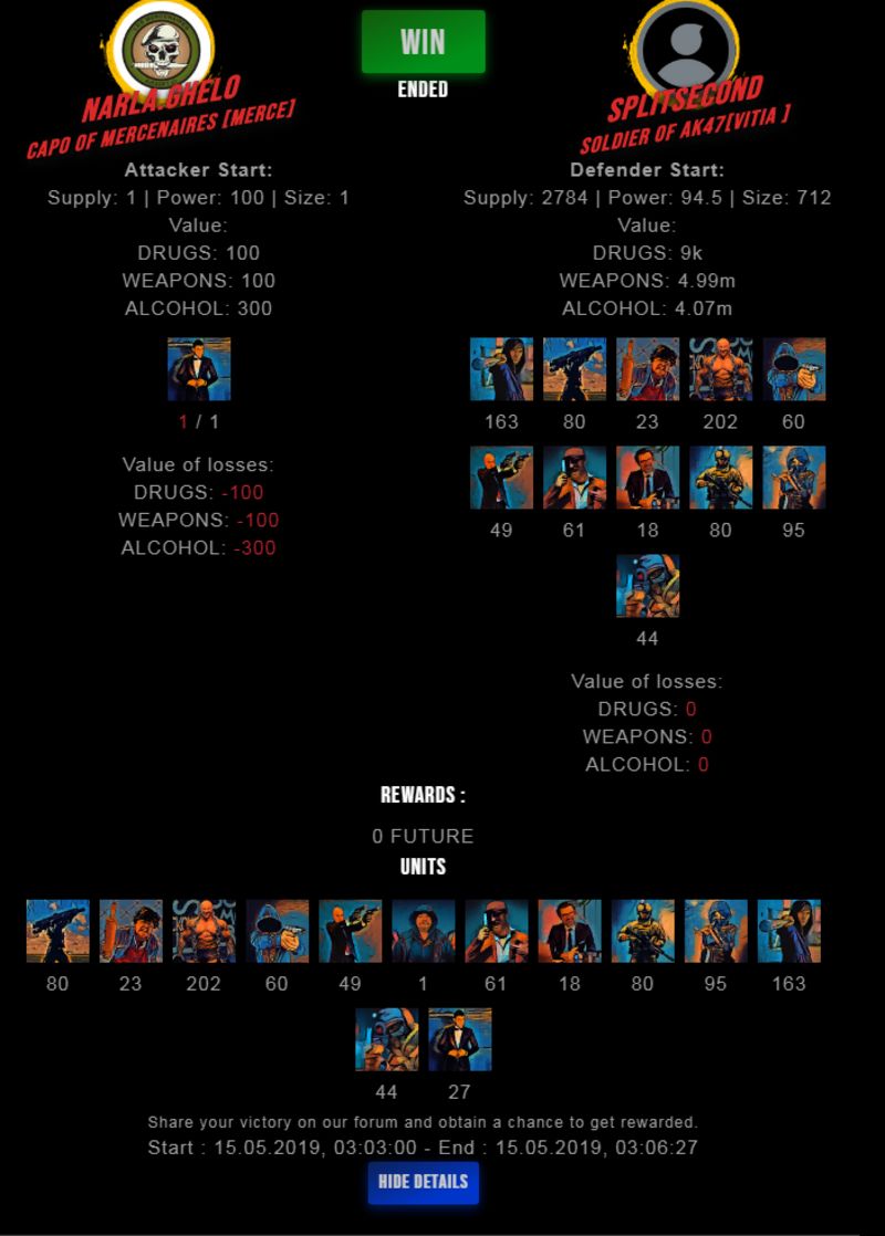 Congratulations @splitsecond ! Your fight received an upvote of 3.2% from the King Dealer as incentive for your activity and as a gratitude for your support to the game.
