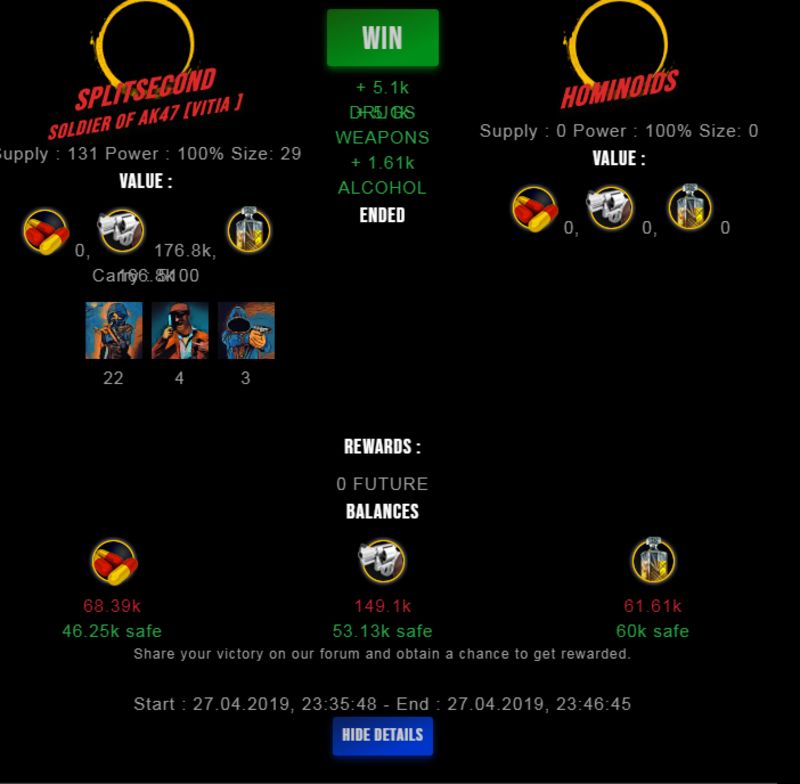 Check my latest fight ! splitsecond vs hominoidssplitsecond (57)in #drugwars-fight • 7 years ago #gaming #fight #dw