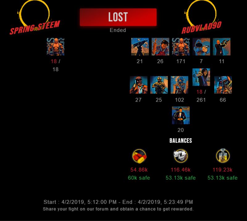 Check my latest fight ! spring-steem vs rubvlad90spring-steem (38)in #drugwars-fight • 7 years ago #gaming #fight #dw