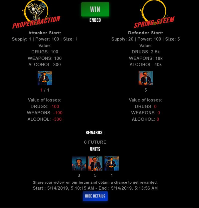 Check my latest fight ! properfraction vs spring-steemspring-steem (38)in #drugwars-fight • 7 years ago #gaming #fight #dw
