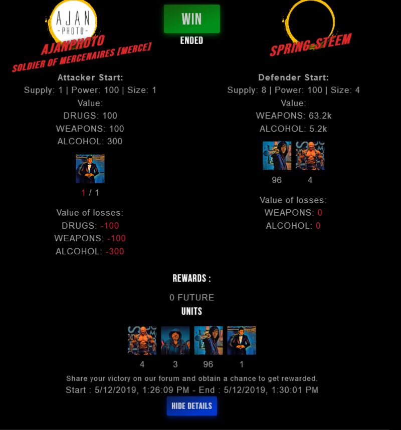 Check my latest fight ! ajanphoto vs spring-steemspring-steem (38)in #drugwars-fight • 7 years ago #gaming #fight #dw