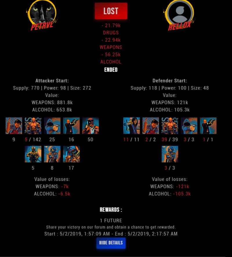 Check my latest fight ! petrvl vs helloxsteem-xy (41)in #drugwars-fight • 7 years ago #gaming #fight #dw