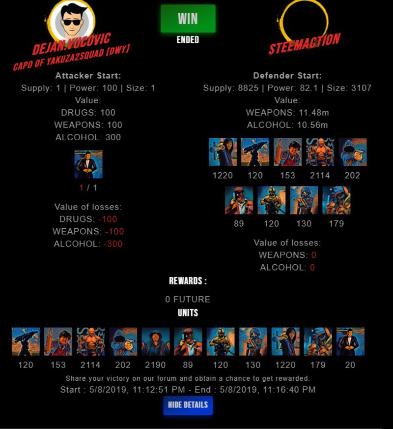 Congratulations @steemaction ! Your fight received an upvote of 0.6% from the King Dealer as incentive for your activity and as a gratitude for your support to the game.