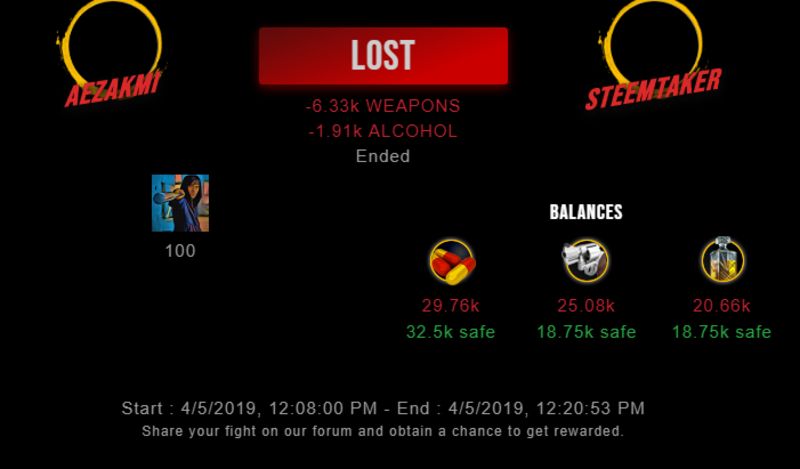 Congratulations @steemtaker ! Your fight received an upvote of 1% from the King Dealer as incentive for your activity and as a gratitude for your support to the game.