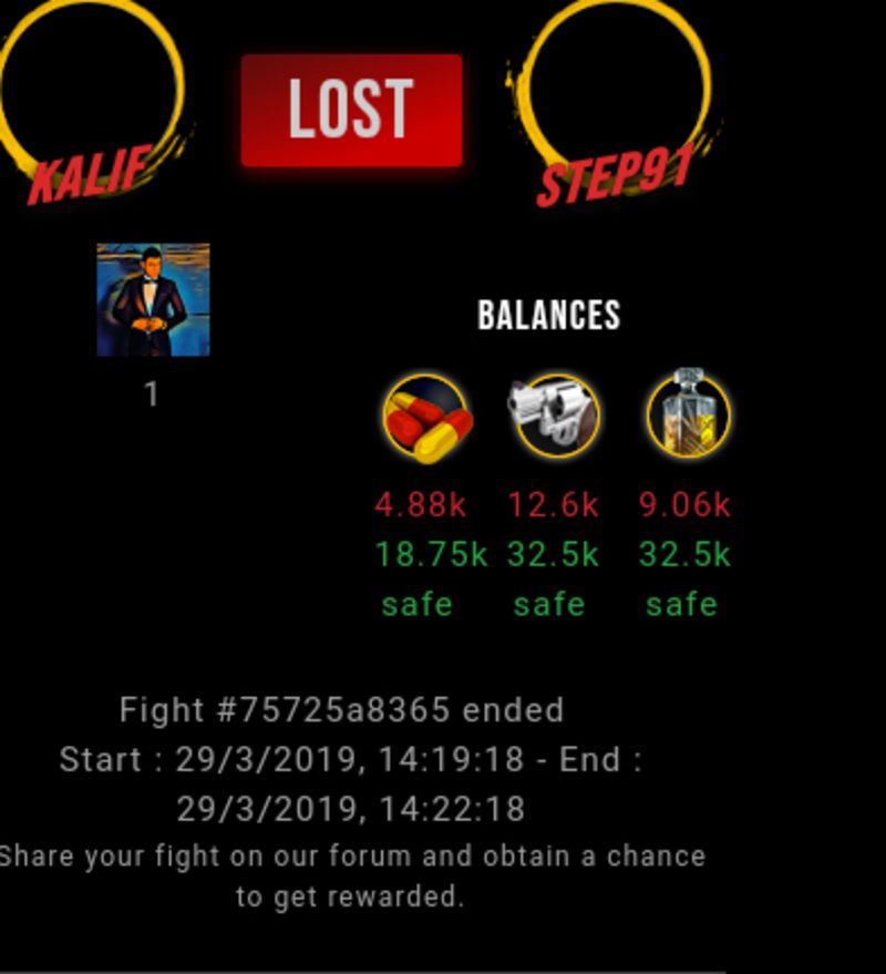 Check my latest fight ! kalif vs step91step91 (33)in #drugwars-fight • 7 years ago #gaming #fight #dw