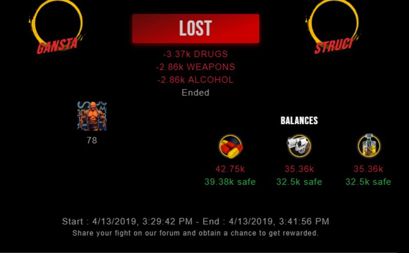 Check my latest fight ! gansta vs strucistruci (29)in #drugwars-fight • 7 years ago #gaming #fight #dw