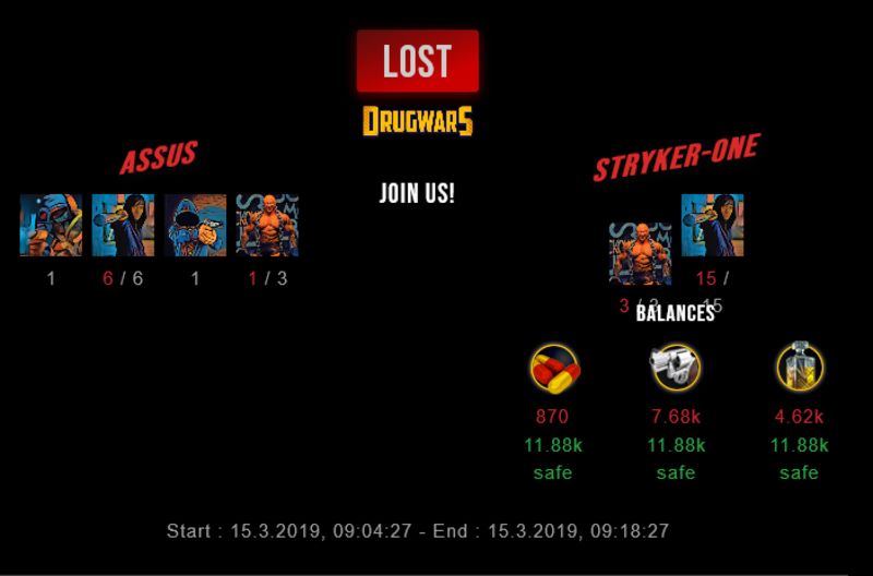 Check my latest fight ! assus vs stryker-onestryker-one (27)in #drugwars-fight • 7 years ago #gaming #fight #dw
