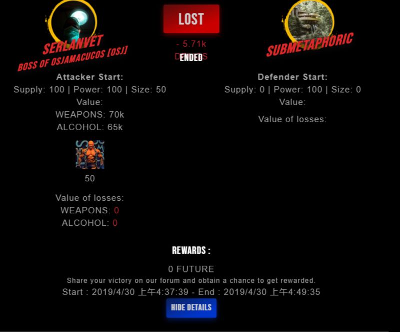 Check my latest fight ! serlanvet vs submetaphoricsubmetaphoric (25)in #drugwars-fight • 7 years ago #gaming #fight #dw