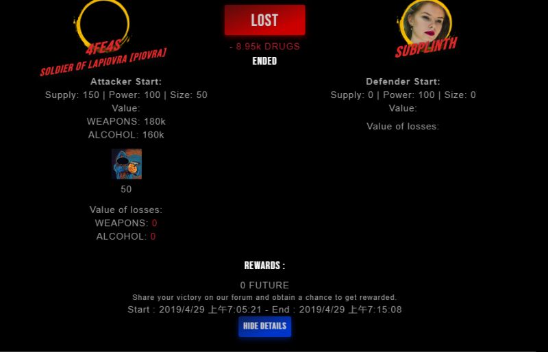 Check my latest fight ! 4fe4s vs subplinthsubplinth (26)in #drugwars-fight • 7 years ago #gaming #fight #dw
