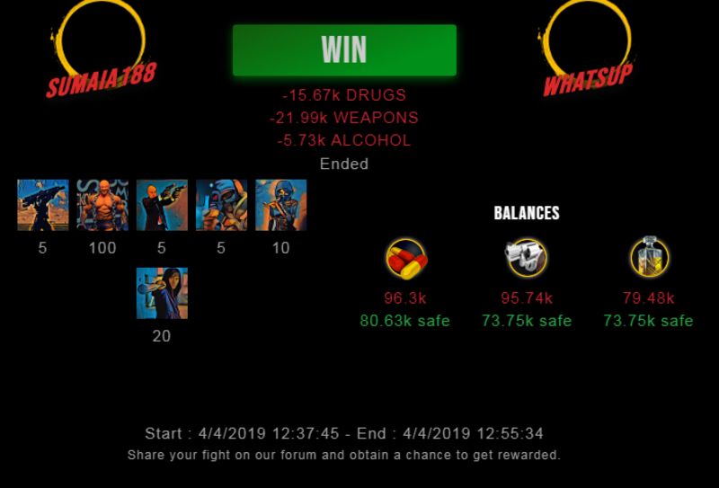 Check my latest fight ! sumaia188 vs whatsupsumaia188 (36)in #drugwars-fight • 7 years ago #gaming #fight #dw