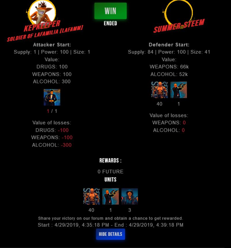 Check my latest fight ! kepkeeper vs summer-steemsummer-steem (41)in #drugwars-fight • 7 years ago #gaming #fight #dw