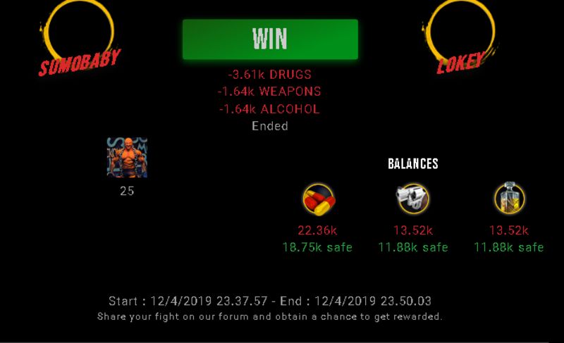 Check my latest fight ! sumobaby vs lokeysumobaby (30)in #drugwars-fight • 7 years ago #gaming #fight #dw