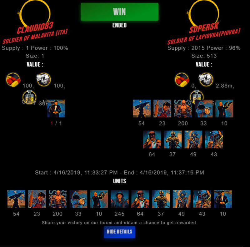 Check my latest fight ! undefined vs undefinedsupersk (37)in #drugwars-fight • 7 years ago #gaming #fight #dw