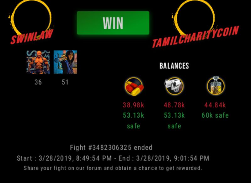 Check my latest fight ! swinlaw vs tamilcharitycoinswinlaw (46)in #drugwars-fight • 7 years ago #gaming #fight #dw