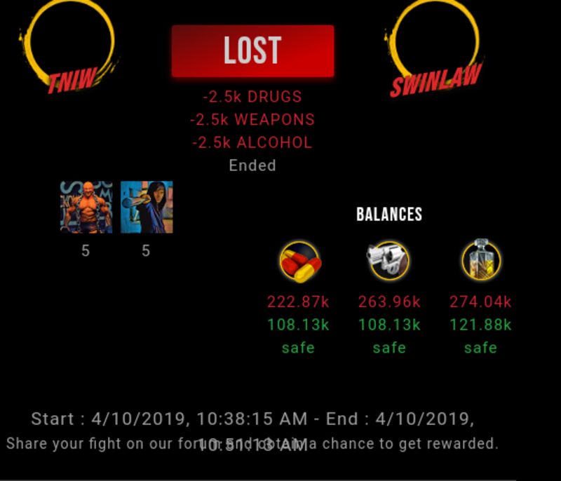 Check my latest fight ! tniw vs swinlawswinlaw (46)in #drugwars-fight • 7 years ago #gaming #fight #dw