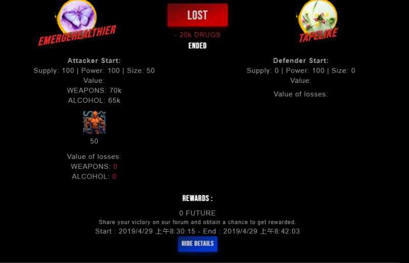 Check my latest fight ! emergehealthier vs tapeliketapelike (25)in #drugwars-fight • 7 years ago #gaming #fight #dw