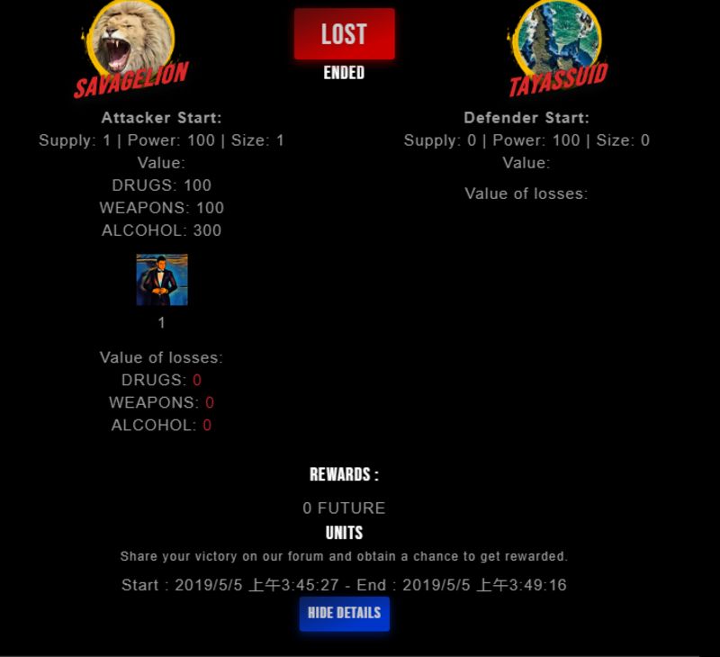 Check my latest fight ! savagelion vs tayassuidtayassuid (26)in #drugwars-fight • 7 years ago #gaming #fight #dw