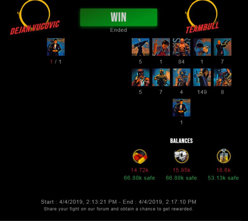 Check my latest fight ! dejan.vucovic vs teambullteambull (45)in #drugwars-fight • 7 years ago #gaming #fight #dw