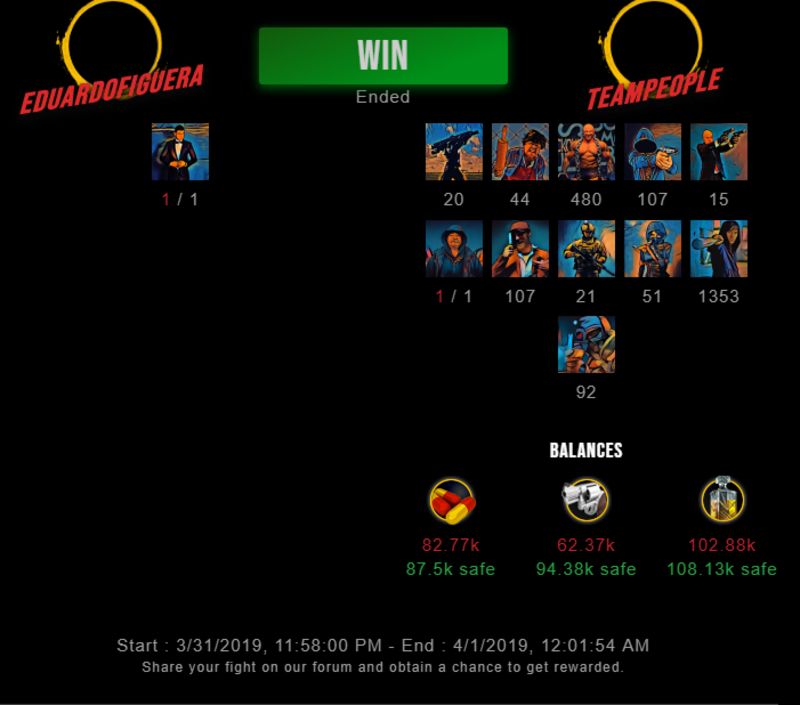 Check my latest fight ! eduardofiguera vs teampeopleteampeople (52)in #drugwars-fight • 7 years ago #gaming #fight #dw