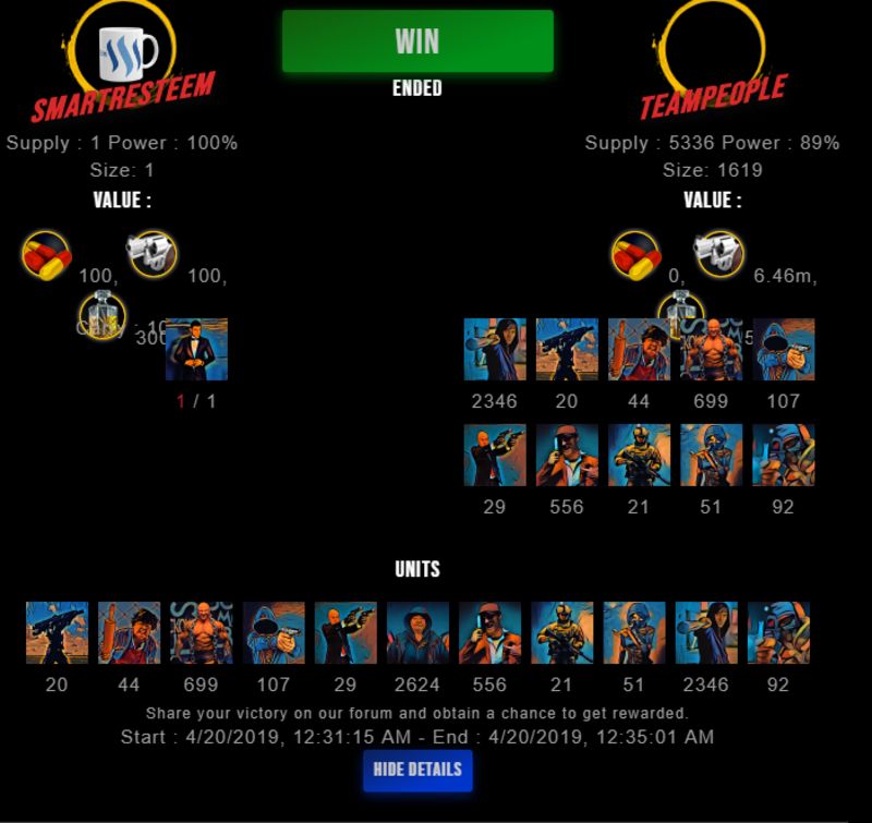Check my latest fight ! smartresteem vs teampeopleteampeople (52)in #drugwars-fight • 7 years ago #gaming #fight #dw