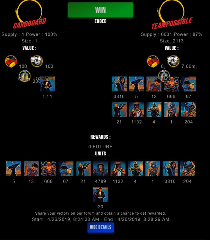 Check my latest fight ! cardboard vs teampossibleteampossible (49)in #drugwars-fight • 7 years ago #gaming #fight #dw