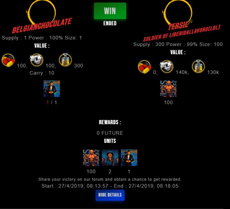 Check my latest fight ! belgianchocolate vs tersiltersil (45)in #drugwars-fight • 7 years ago #gaming #fight #dw