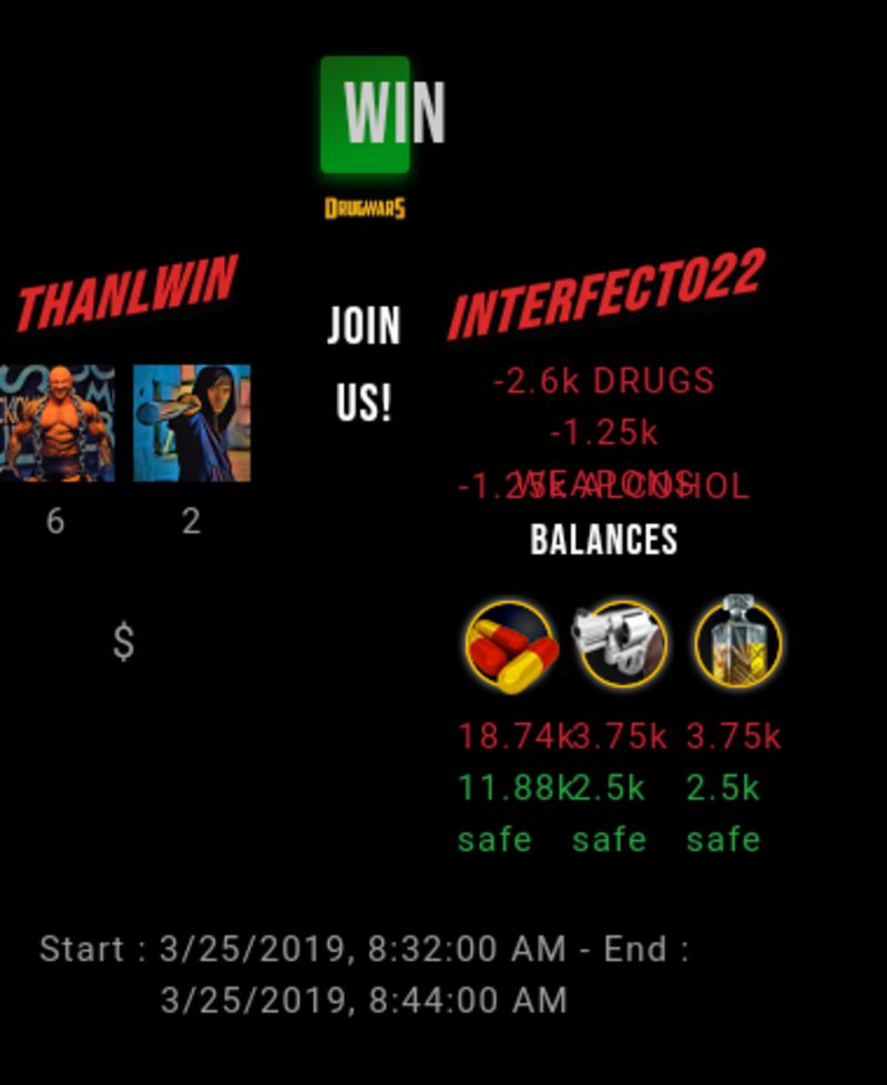 Check my latest fight ! thanlwin vs interfecto22thanlwin (43)in #drugwars-fight • 7 years ago #gaming #fight #dw