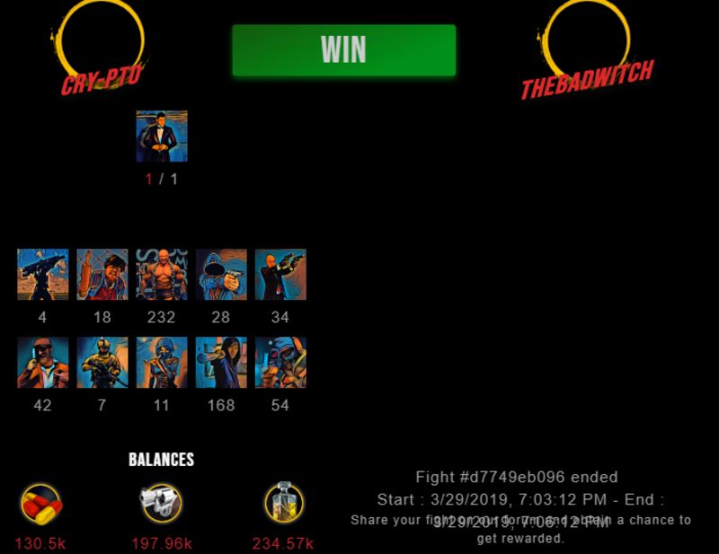 Congratulations @thebadwitch ! Your fight received an upvote of 1.3% from the King Dealer as incentive for your activity and as a gratitude for your support to the game.