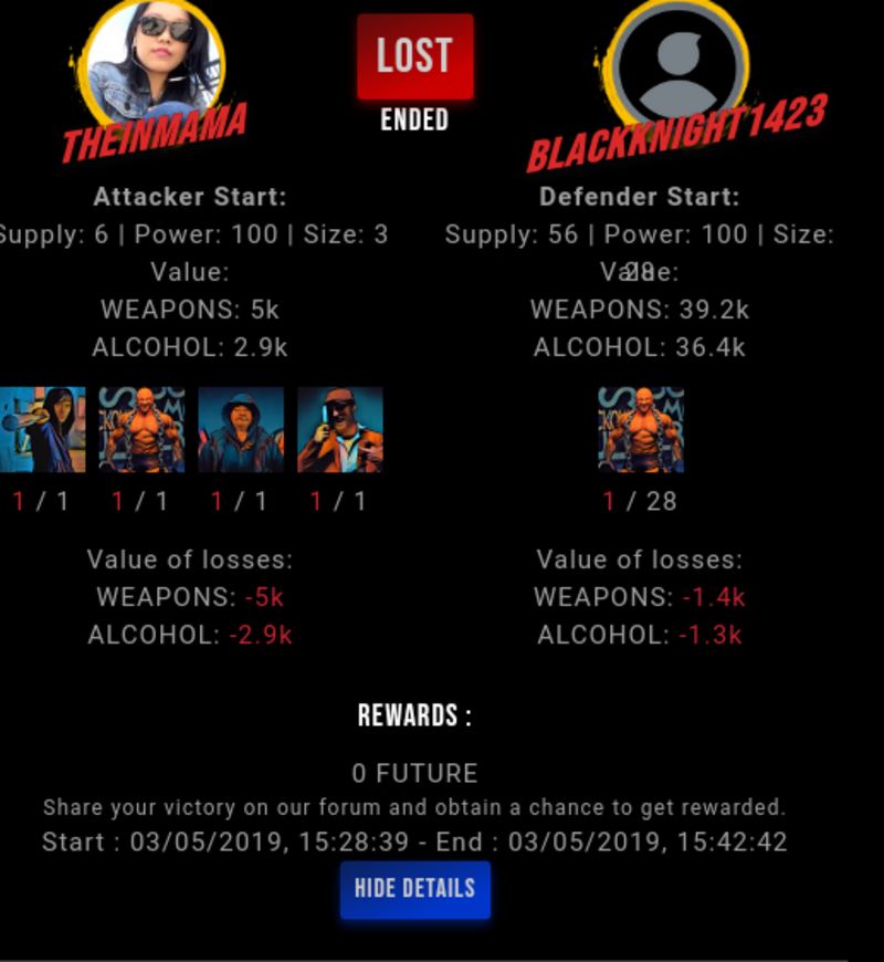 Check my latest fight ! theinmama vs blackknight1423theinmama (39)in #drugwars-fight • 7 years ago #gaming #fight #dw