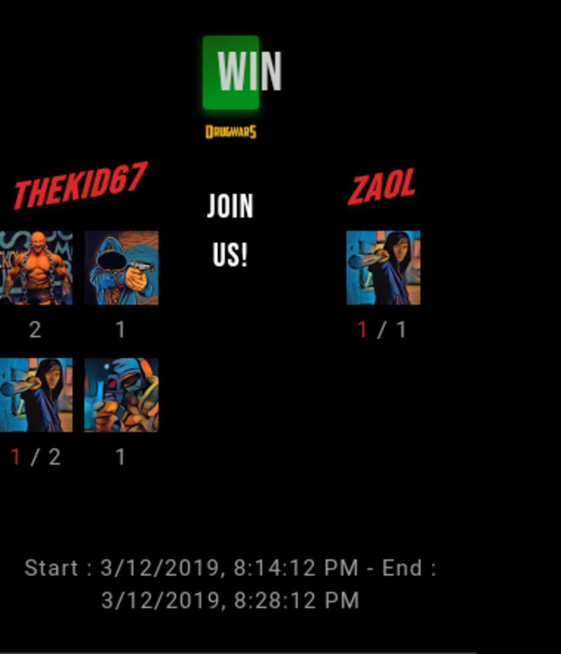 Check my latest fight ! thekid67 vs zaolthekid67 (42)in #drugwars-fight • 7 years ago #gaming #fight #dw