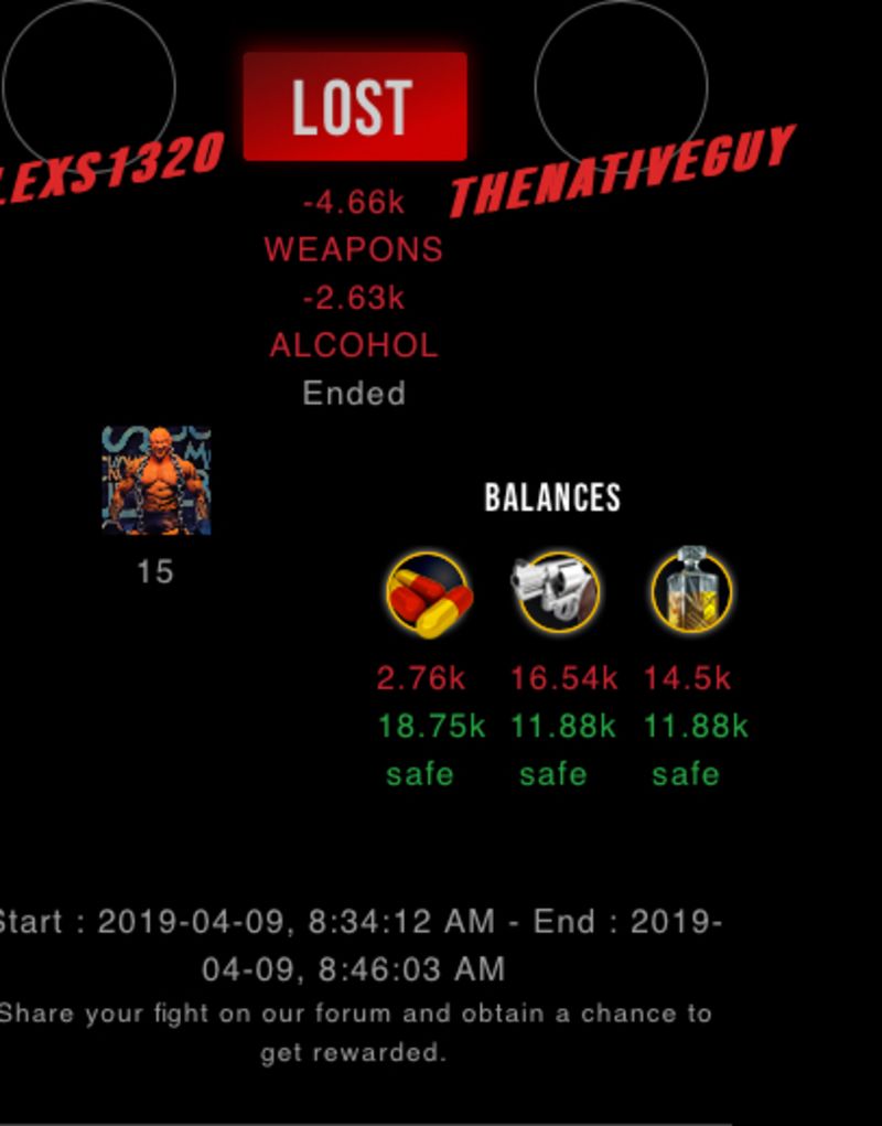 Check my latest fight ! alexs1320 vs thenativeguythenativeguy (52)in #drugwars-fight • 7 years ago #gaming #fight #dw